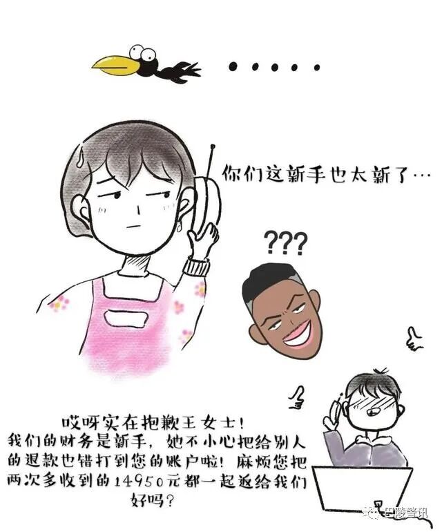 客服”来电又一次响起,对方称工作人员再次操作失误,错将别人的1万元赔付款打进了王女士的账户里。王女士只觉得又好气又好笑,但善良的她觉得大家都不容易,便同意将多收到的钱返还对方。她没有意识到,自己已经落入了对方的连环套中。