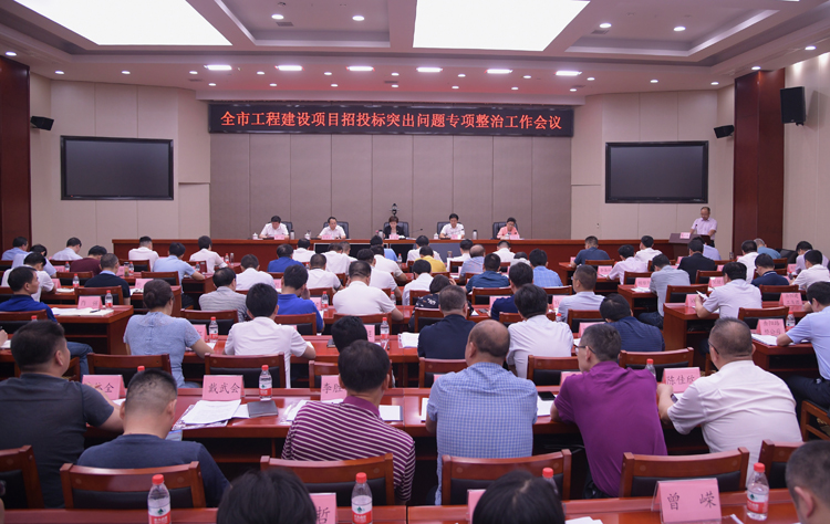 6月10日下午,全市工程建设项目招投标突出问题专项整治工作会议召开,市委副书记、市长李爱武强调,要全力推进工程建设项目招投标突出问题专项整治,还工程建设领域一方“净土”,确保行政权力在“阳光”下运行。市委常委、常务副市长李挚主持,市委常委、市纪委书记、市监委主任林彰良对专项整治工作作动员部署,市领导刘晓英及相关部门负责人参加。