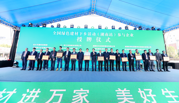 11月1日上午,主题为“绿色建材进万家 美好生活共创建”的2022年全国绿色建材下乡活动(湖南站)启动仪式在湘阴县举行,为期3天的绿色建材展览同步进行。我市装配式建筑及建筑新材料产业链21家企业与省内外同行一起响应国家“美丽乡村建设”的号召联袂参展。