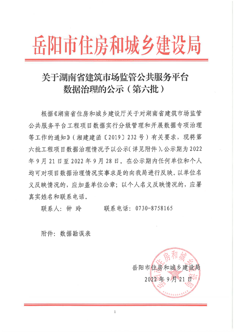 关于湖南省建筑市场经济监管公共服务平台数据治理的公示(第六批)