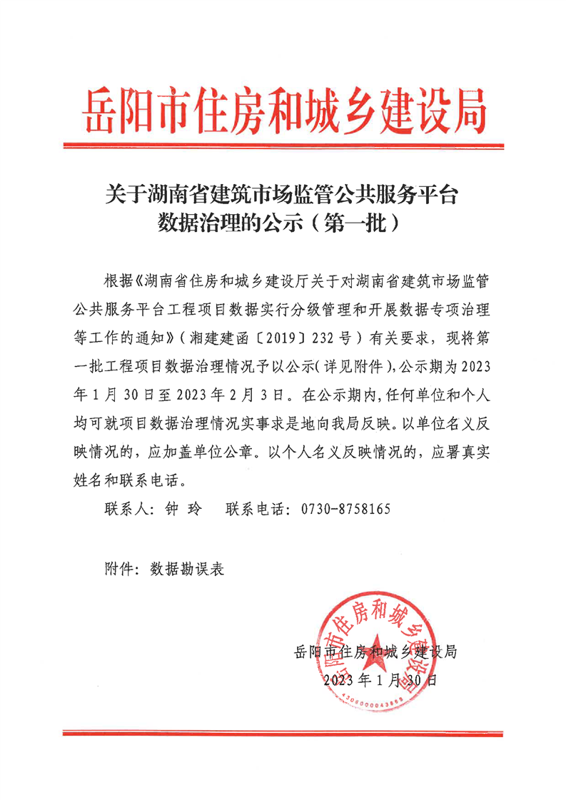 关于湖南省建筑市场监管公共服务平台数据治理的公示(第一批)-2023