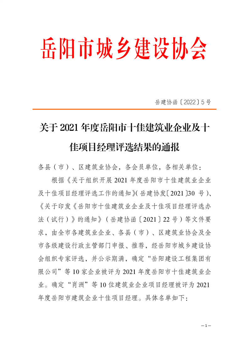关于2021年度bei365官网_365bet体育在线网站_bt365体育在线备用十佳建筑业企业及十佳建筑业企业项目经理评选结果的通报