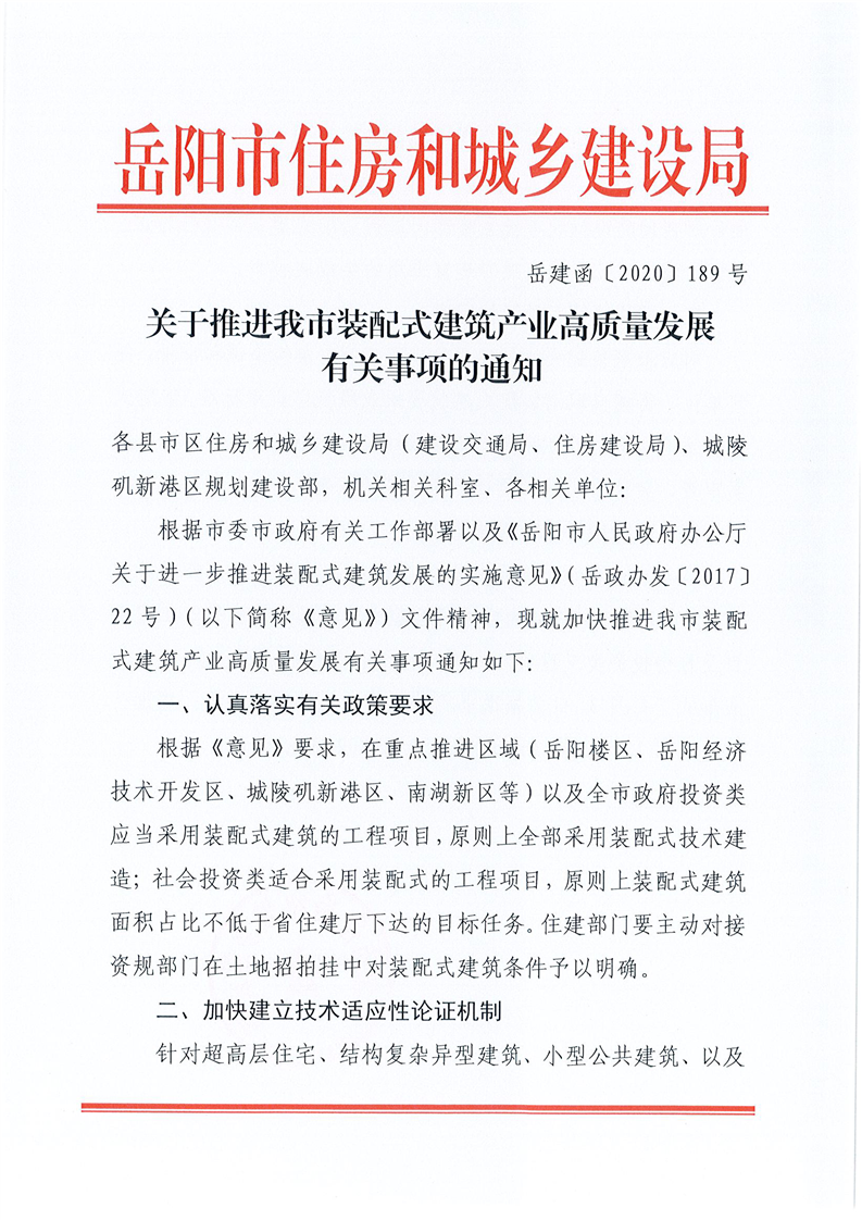 关于推进我市装配式建筑产业高质量发展有关事项的通知