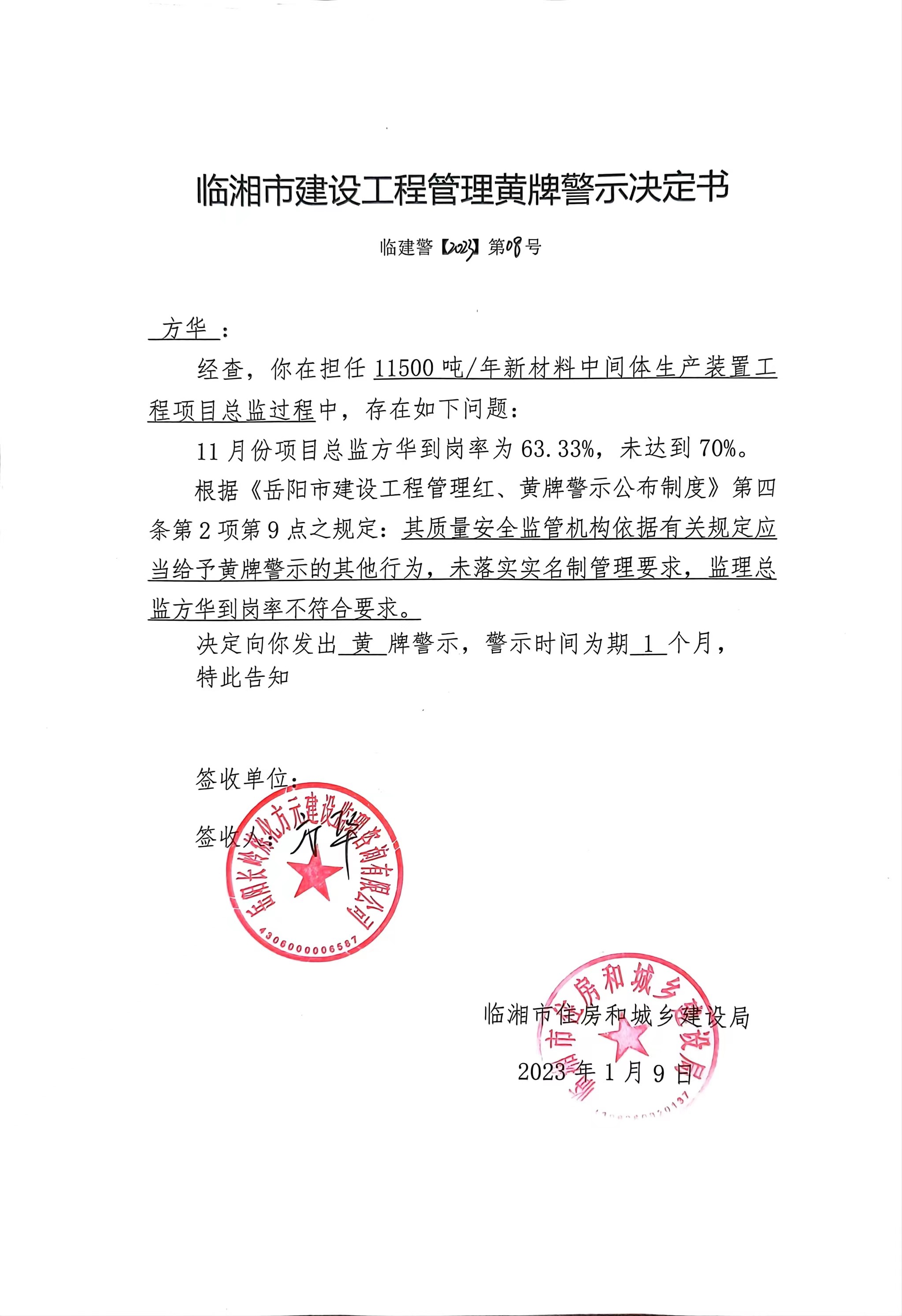 岳阳长岭炼化方元建设监理咨询有限公司总监方华
