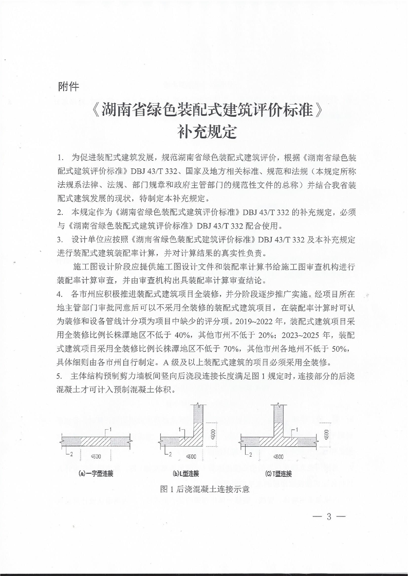 关于印发《 (湖南省绿色装配式建筑评价标准)补充规定》的通知