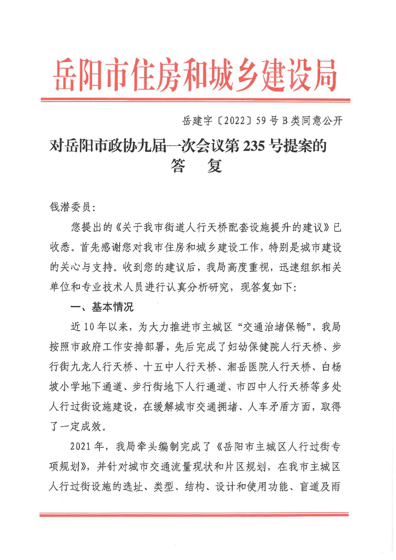 岳建字(2022)59 号(对bei365官网_365bet体育在线网站_bt365体育在线备用政协九届一次会议第235号提案的答复)