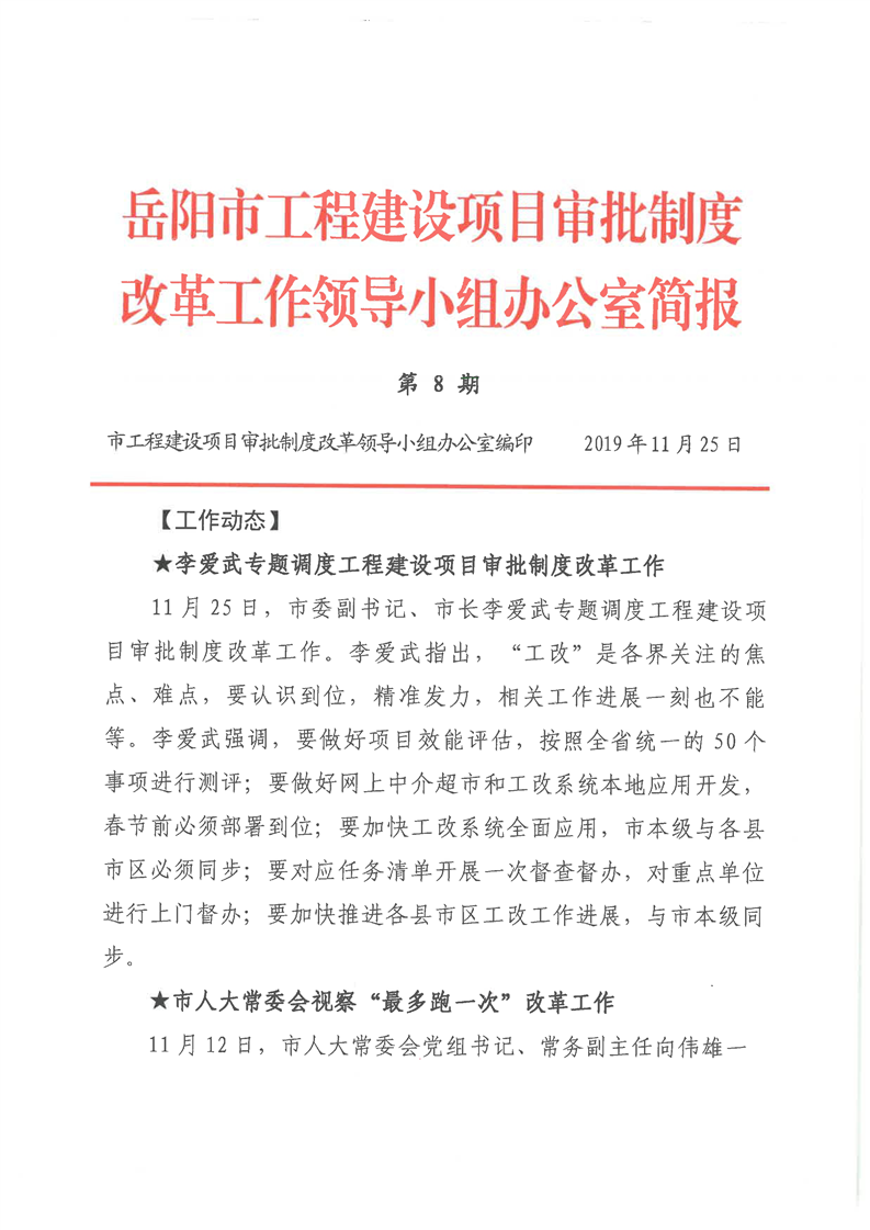 市工程建设项目审批制度改革工作领导小组办公室第8期简报