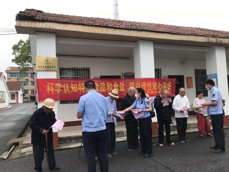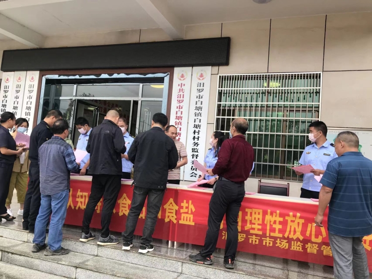 9月22日,汨罗市市场监督管理局党组成员、副局长朱征兵带队来到白塘镇白塘村开展第六次特殊食品及食盐科普宣传活动。