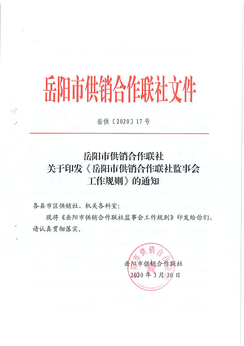 bei365官网_365bet体育在线网站_bt365体育在线备用供销合作联社关于印发《bei365官网_365bet体育在线网站_bt365体育在线备用供销合作联社监事会工作规则》的通知