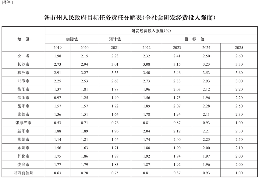 附件:1.各市州人民政府目标任务责任分解表(全社会研发经费投入强度)