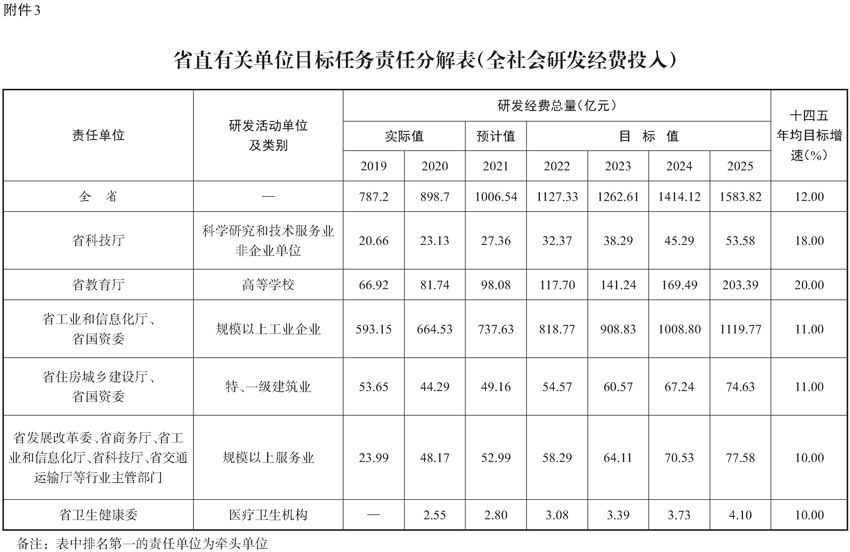 3.省直有关单位目标任务责任分解表(全社会研发经费投入)