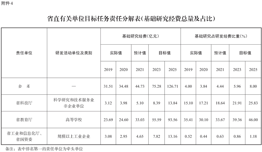 4.省直有关单位目标任务责任分解表(基础研究经费总量及占比)