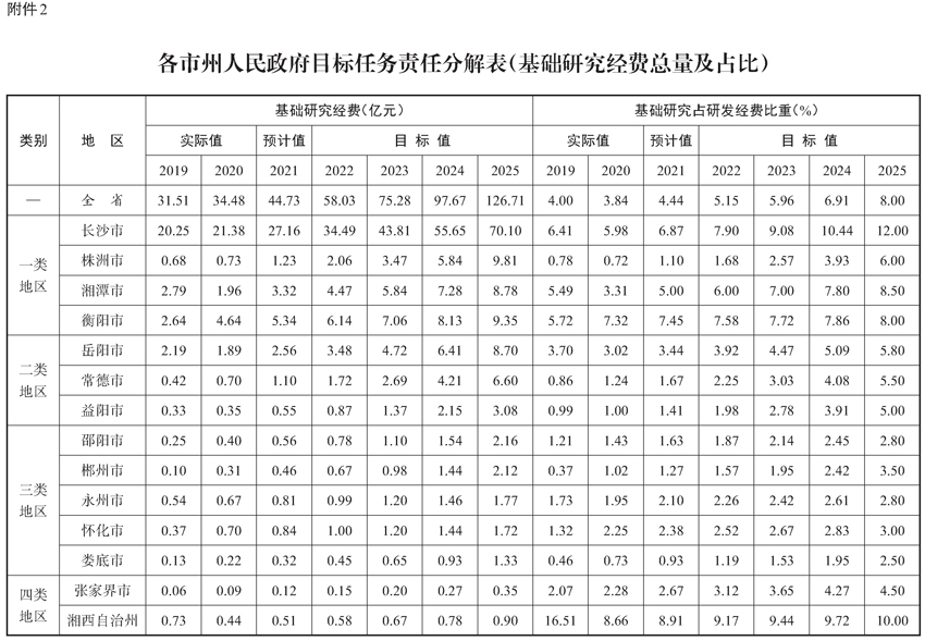 2.各市州人民政府目标任务责任分解表(基础研究经费总量及占比)