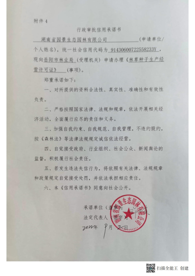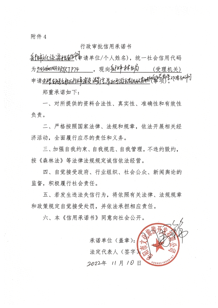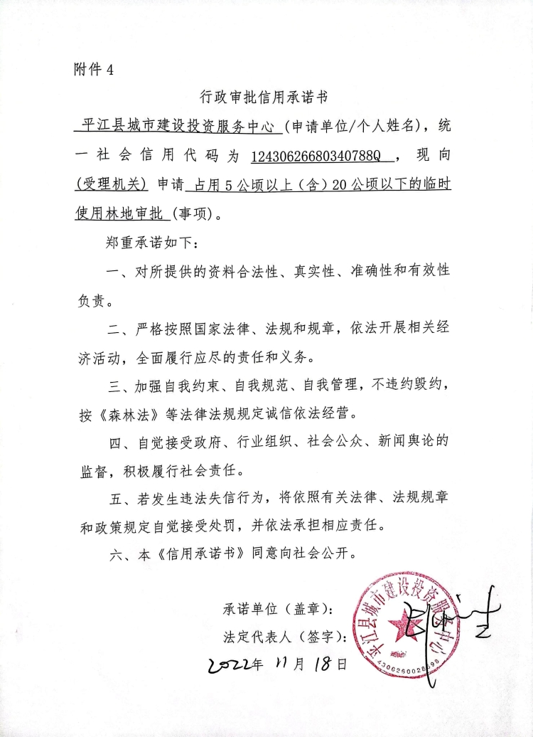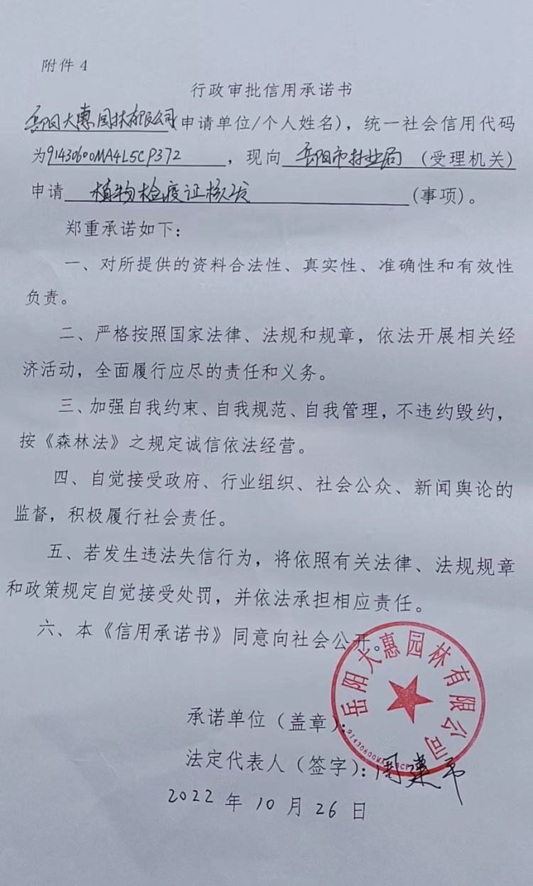 2022年行政审批信用承诺书