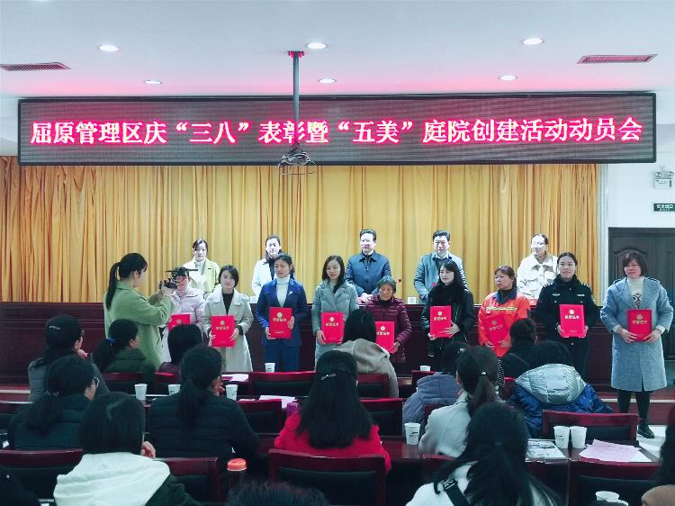 3月7日上午,在第109个“三八”国际妇女节到来之际,bei365官网_365bet体育在线网站_bt365体育在线备用屈原管理区召开庆“三八”表彰及“五美”庭院创建活动动员大会。区委副书记田明清、党委委员曹正平出席会议。