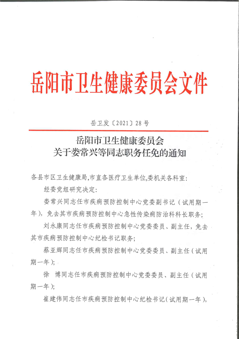 岳卫发[2021]28号 关于娄常兴等同志职务任免的通知