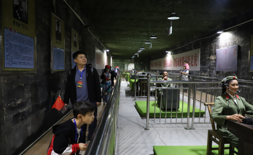 孩子们跟着讲解员沿着四通八达的大小坑道观看了国防军事题材的图文介绍和等比仿制的核弹、导弹、卫星、飞船等实物模型,近距离观摩长征运载火箭和东风导弹的模拟发射。借助VR设备的高仿真效果,大家坐在“嫦娥”、“天宫”、“蛟龙”等模拟仓里,身临其境地体会了太空出仓行走、月球表面漫步、深海科学探险惊心动魄的感觉。在国防竞技体验区,孩子们兴奋地拿起各式武器,亲身体验CS对抗训练和精准射击,坐上两栖车和坦克,享受陆上穿梭与泛水航行带来的刺激,丰富多彩的活动的让大家流连忘返。