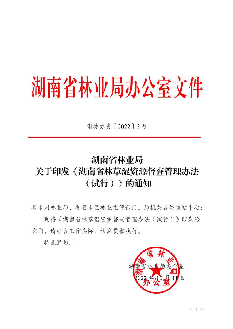 湖南省林业局关于印发《湖南省林草湿资源督查管理办法 (试行)》的通知