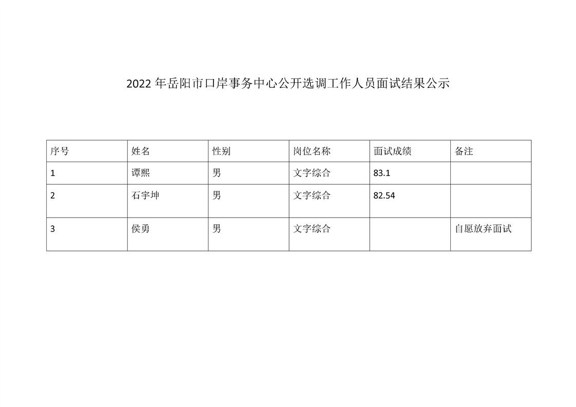 2022年bei365官网_365bet体育在线网站_bt365体育在线备用口岸事务中心公开选调工作人员面试结果公示
