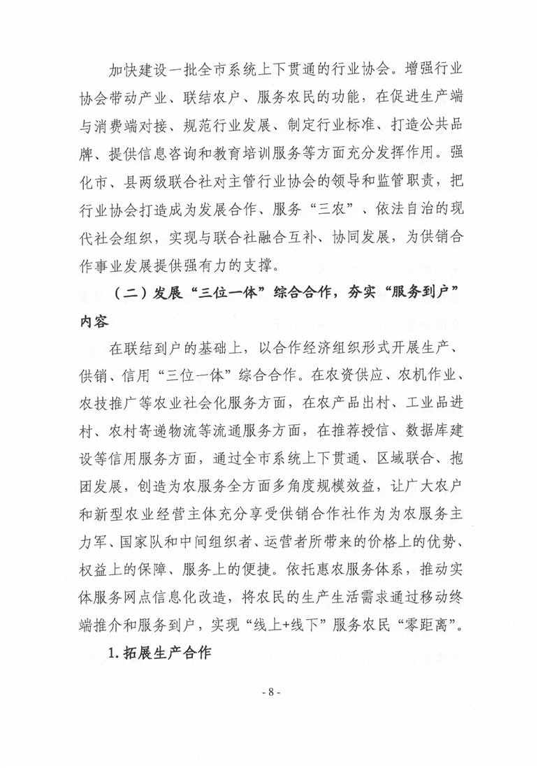 bei365官网_365bet体育在线网站_bt365体育在线备用深化供销合作社综合改革领导小组办公室关于印发《bei365官网_365bet体育在线网站_bt365体育在线备用持续深化供销合作社综合改革,推进“两个到户”,开展生产、供销、信用“三位一体”综合合作工作方案》的通知