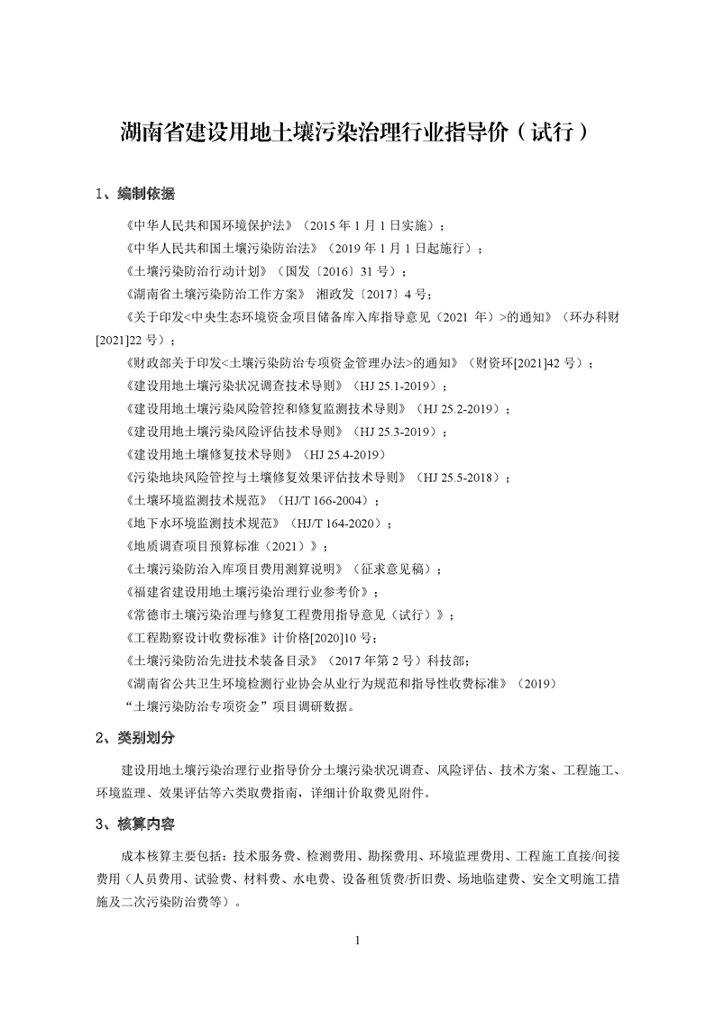 《湖南省建设用地土壤污染治理行业指导价(试行)》