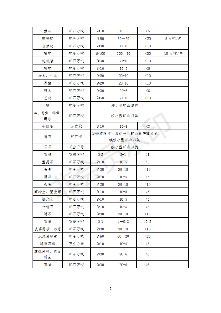 矿山规模等级划分按照《关于调整部分矿种矿山生产建设规模标准的通知》中的分类表执行(见附件)。