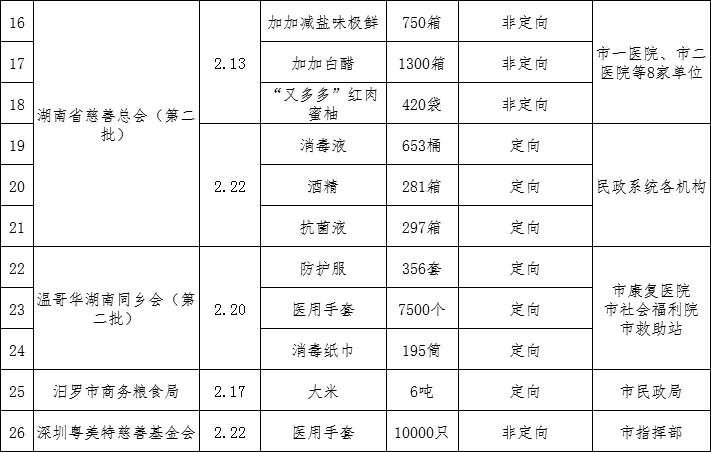 bei365官网_365bet体育在线网站_bt365体育在线备用慈善总会自2020年1月29日接受抗击新型冠状病毒肺炎疫情募捐以来,共收到爱心捐款228.1505万元,物资折合价值306.648万元,第一批捐赠款物公示已于2020年2月4日向社会公示,现将第二批捐赠款物及使用情况(数据截止2020年2月23日10点)公示如下。