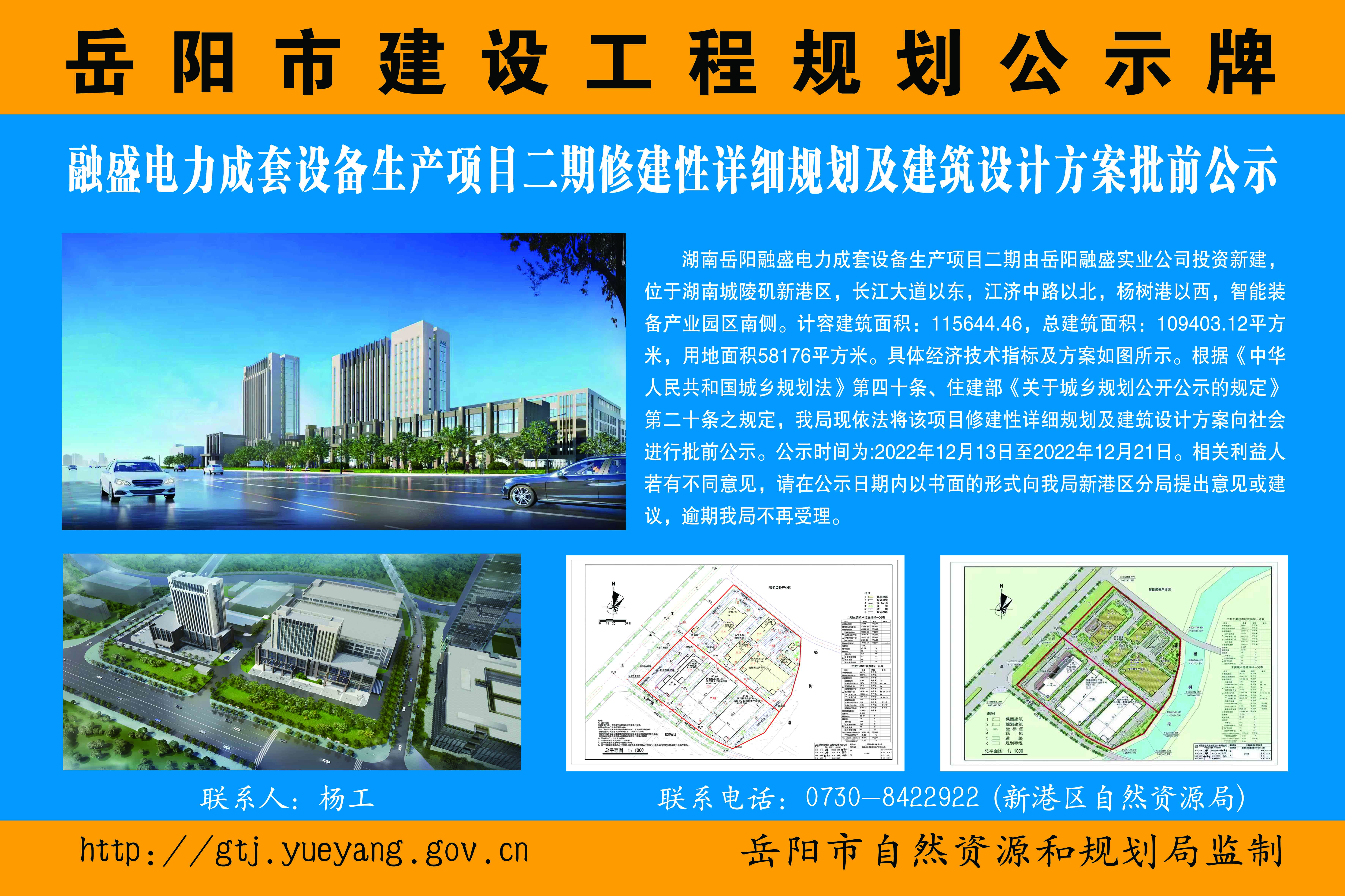 融盛电力成套设备生产项目二期修建性详细规划及建筑设计方案批前公示